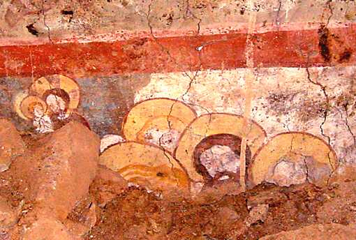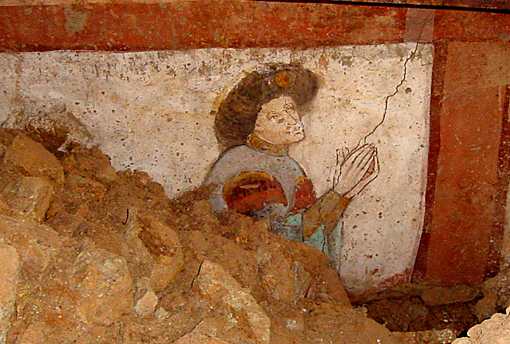 Eine sensationelle Entdeckung waren die Reste von Wandmalereien, die noch vom Vorgängerbau stammen. | ||||||||||||||||||||||||||||||||||||||||||||||||||||||||||||||||||||||||||||||||||||||||||||||||
