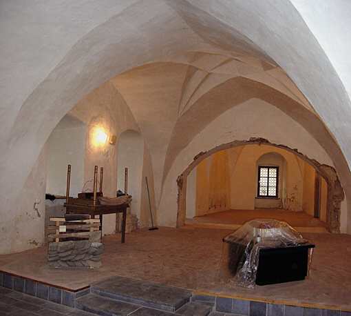 Das Erdgeschoß weist Zellengewölbe auf, wie sie erstmals von Arnold von Westfalen in der Albrechtsburg Meißen entwickelt worden sind. | ||||||||||||||||||||||||||||||||||||||||||||||||||||||||||||||||||||||||||||||||||||||||||||||||